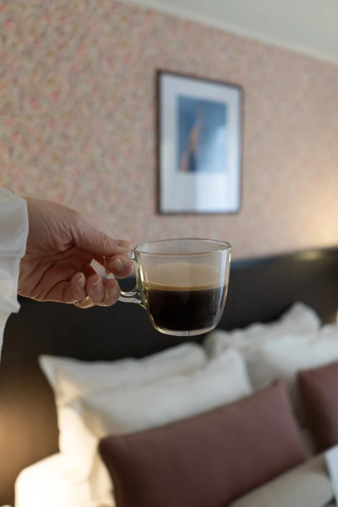 Dans le salon, l’odeur du café fraîchement moulu se mêle à celle des viennoiseries encore tièdes. On entend les premières conversations, un rire discret, le froissement d’un journal. Paris s’éveille et ici, on prend le temps.