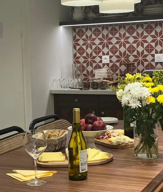 As evening approaches, the wine & cheese apéritif becomes a shared moment. A glass poured, carefully selected cheeses, and the comfort of a relaxed atmosphere.