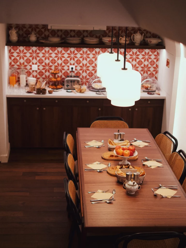 Chez Joli Môme, la maison s’éveille au même rythme. Au salon, quelques chuchotements, le froissement d’un journal, la lumière qui danse sur la grande table d’hôtes… Tout invite à ralentir. À respirer. À se sentir bien.